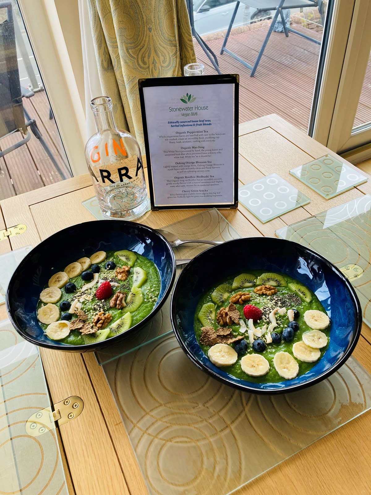 Stonewater House Vegan B&B overlooks Lamlash Bay, Holy Isle and the old Lamlash Pier, and is the perfect base for a stay on the Isle of Arran, whatever the time of year. Also known as Scotland in Miniature and just over 50 miles from Glasgow, Arran boasts everything from scenic walks and mountain climbing, castles and caves, to boating activities and beautiful beaches. At Stonewater House we are proud of our plant based cuisine - we believe we serve the best breakfasts around. Our extensive vegan breakfast menu has something for everyone to enjoy, whether you're vegan or not. Begin with fresh fruit juice or a fruit smoothie, continue with sweet or savoury oatmeal porridge, a choice of overnight chia puddings or carrot oats, fruit kebabs, muesli or granola, and finish up with our signature sausage piece, buckwheat pancakes with fruit and maple syrup, a TLT (you've never had tofu like this before!), or go all out for a big breakfast with homemade vegan haggis, mushrooms cooked in Carol's special sauce, air fried potatoes, sausages and our own tofu "bacon", and a scrambled tofu that is simply delicious. Check out our website or Facebook page to see more. Our breakfasts will fill you up, but if you're planning a day's hike we can provide a packed lunch comprised of wraps, fruit, snacks and a drink that won't leave you hungry. Guests have complimented Carol and Jules on the comfort and cleanliness of the bedrooms, and their attention to detail, from the little extras like tea, coffee, cold drinking water, fruit and snacks provided in the bedrooms, to the Faith In Nature vegan toiletries in the en-suite bathrooms. On arrival you'll be offered a coffee or something from our ethically sourced teas menu. Whether you're a seasoned visitor to Arran, or this is your first visit, come and stay with us at Stonewater House. We guarantee you'll want to come back!